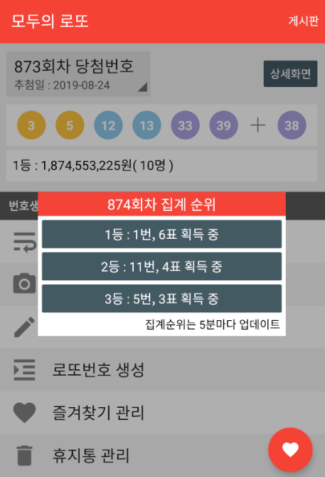 2. 처음 만들었을 때보다 기능도 많이 추가되었고 편리한 기능들도 많이 생겼습니다. 모두의 로또 사용자들이 다음 회차에 나올 번호를 하나 골라서 많이 투표한 번호를 알 수 있는 기능도 추가하였습니다.