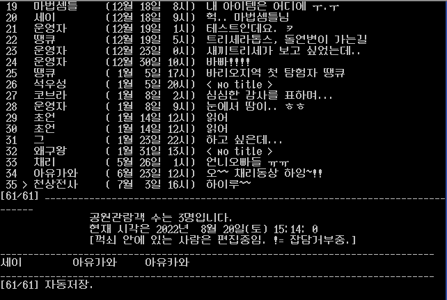 일상 쥬라기공원 MUD 머드 재오픈. 이야기 M 다운로드. by 아유카와 2022. 8. 20. 24년전 함께 했던 KIS 한국전력 주라기공원 사용자들 모이세요. 아이피: 123.142.70.250 포트: 4000 이야기 M iyagi_M.zip 4.03MB 공유하기 게시글 관리 어느 개발자의 일상 관련글 LG 통돌이 T15DS 세탁기 도어 고장 루메나 선풍기 FAN PRIME 2 플러스 배터리 제거 나비엔 보일러 NR-30S 온도조절기 다이얼 오작동 수리 [한국전력] 쥬라기공원 머드 MUD 재오픈